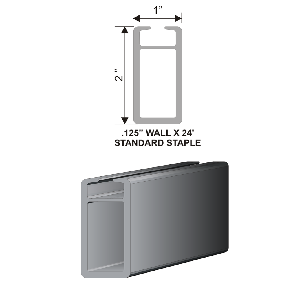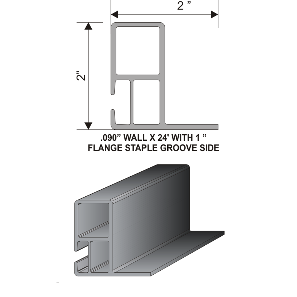 The drawings below represent standard extrusions that are specifically sized and engineered so that the correct balance of product weight, strength and cost can be taken into account during the design process. The channel inside the tubing allows for fabric to stapled to the frame while the flanges are typically used to hold sheeting material like egg crate. These extrusions are typically available in either aluminum or galvanized steel.